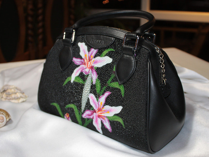 Handtasche aus Rochenleder mit beidseitigem Blumendesign
